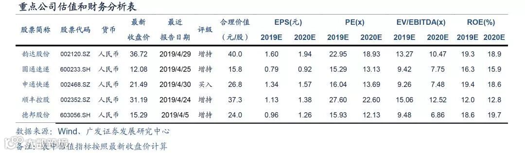 3)产能投入均衡化将加速成本端改善。补产能短板将进一步释放规模优势,加速成本优化;2019年,三通一达都将集中优化产能、补短板,现金流优质的公司或将在成本与现金流的循环中演绎强者恒强。
