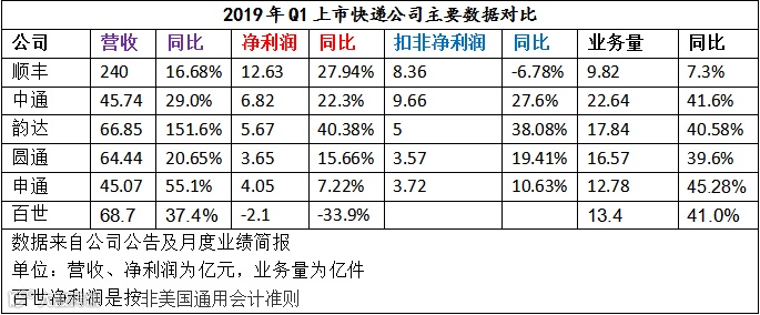随着5月16日中通快递发布了2019年第一季度业绩,国内上市快递公司均完成了一季度业绩的发布。除了顺丰毫无悬念地摘得营收冠军(由于统计口径不同,该数据比较价值不大)外,在净利润和快递业务量两项核心指标的比拼中,中通不出意外地拔得头筹。