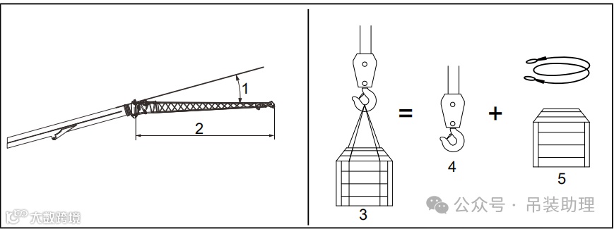 额定起重量(3)包括吊具(4)、载荷的质量和起吊用附件的质量(5)。 |