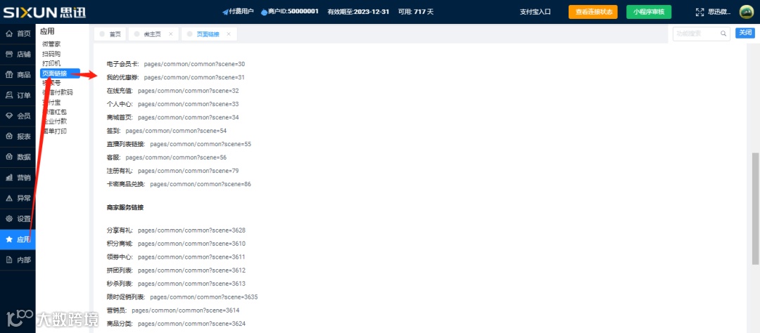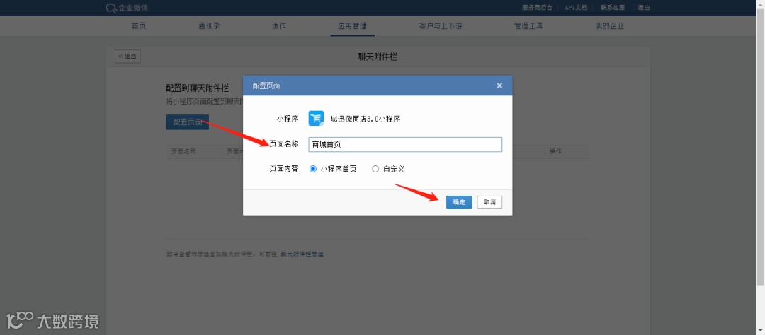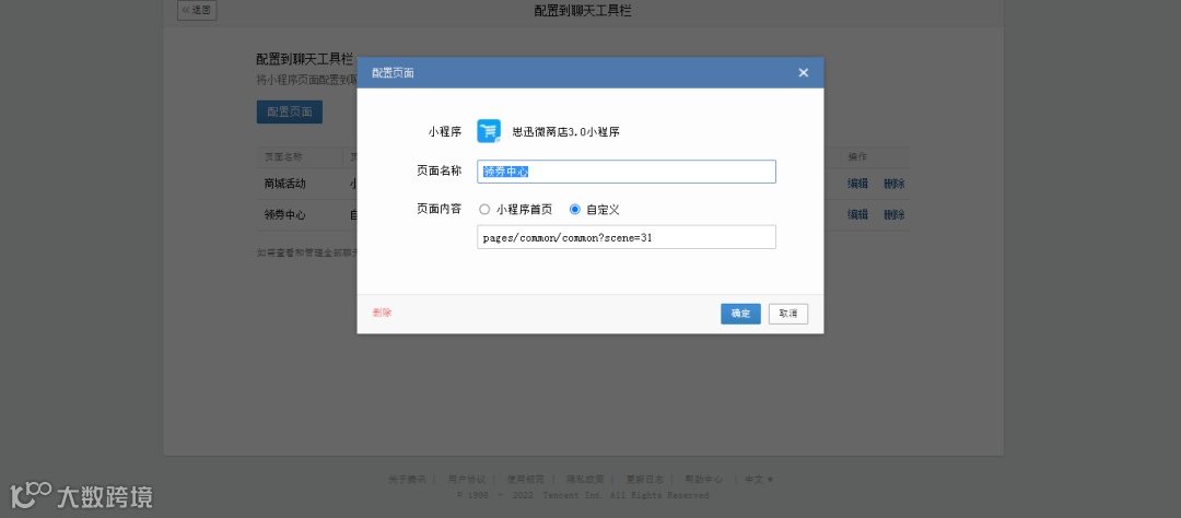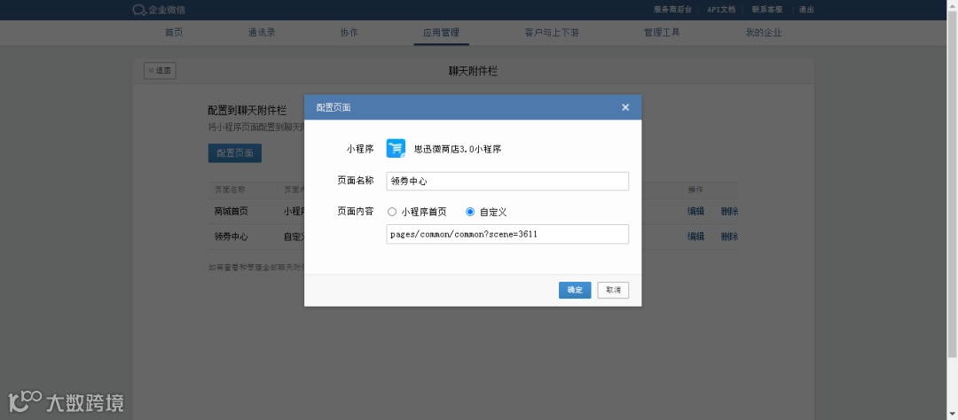 提示:可以配置自家商城的首页,也可以配置优惠券等连接小程序其他的界面,填写需要跳转的小程序页面,顾客就可以快速进入这个界面。