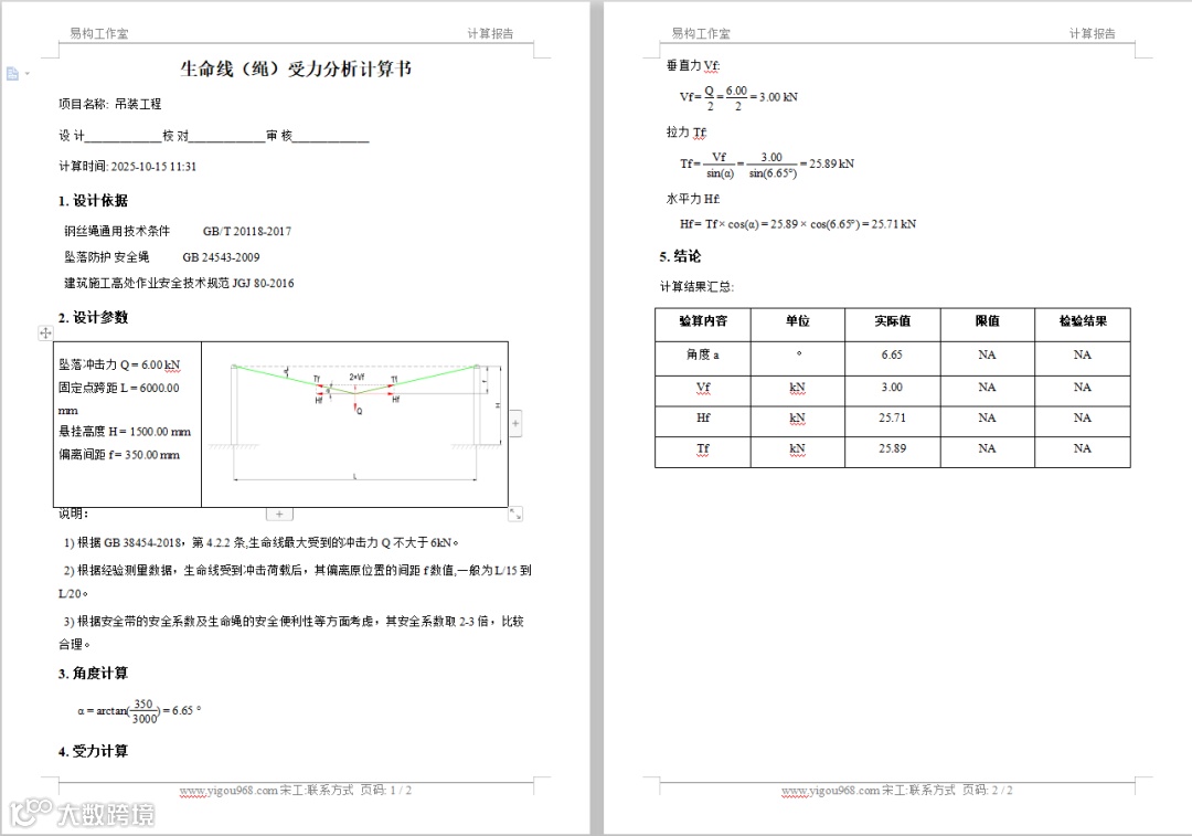🎯 全网首款生命线(绳)设计计算模块 —— 为工程安全量身打造的专业工具