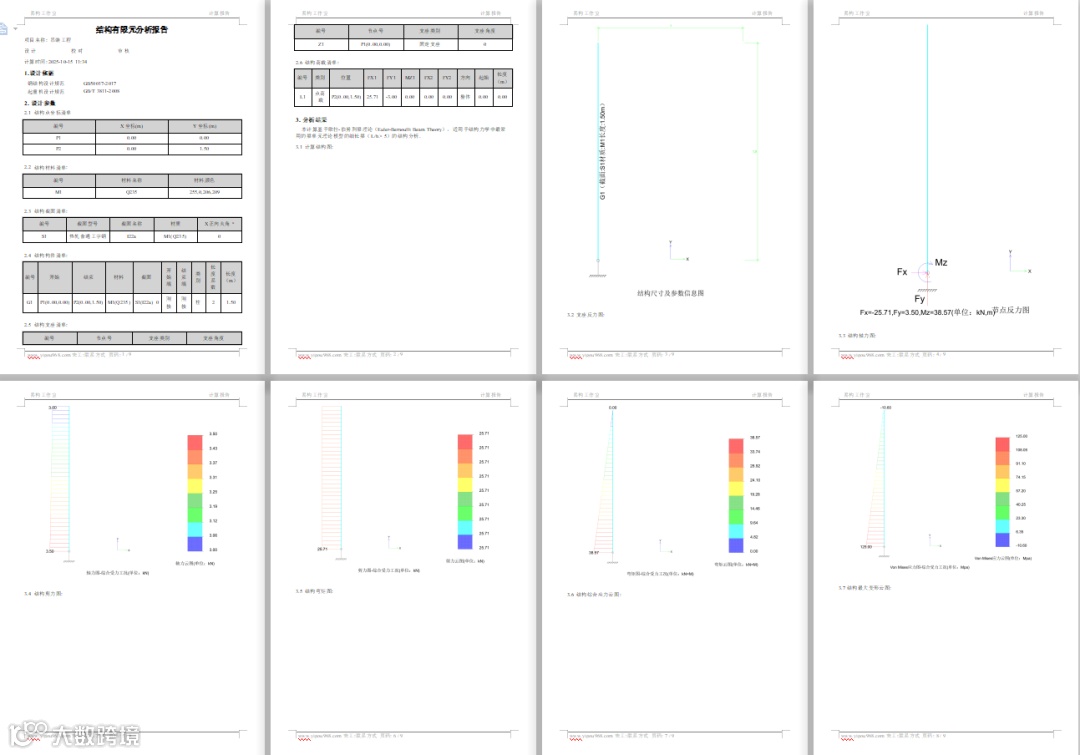 系统自动生成图文并茂、公式详尽的 Word 计算书—— 不仅包含受力分析过程、规范引用依据,还附带设计图纸,每一步都可追溯。既省去手动排版的时间,又能直接用于方案评审、安全交底和资料归档,让设计 “有据可查、有章可循”。