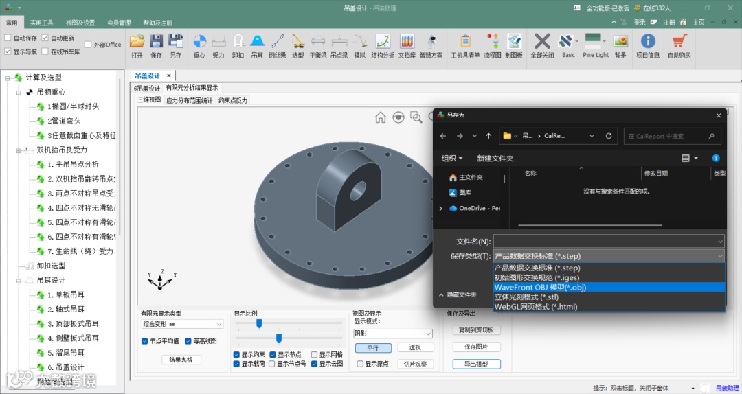 •核心干货:模块内置了首创的吊盖外形自动设计算法。用户只需输入基本载荷与卸扣型号,系统即可基于内部强大的知识库和优化算法,自动匹配最佳卸扣,并一键生成最优的吊盖外形与结构尺寸。