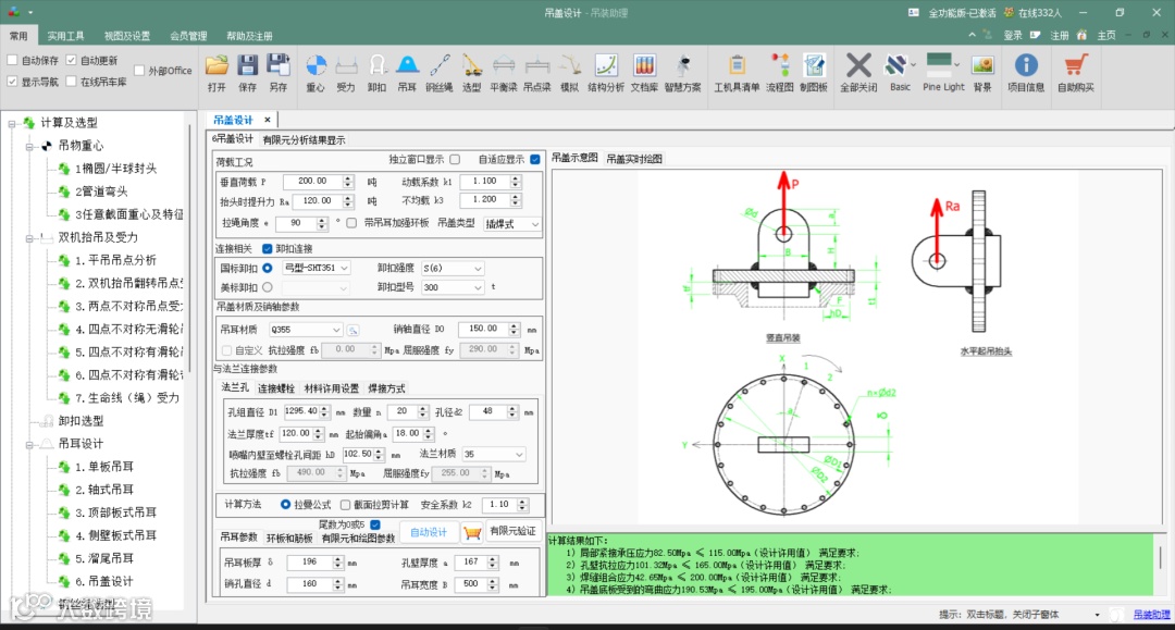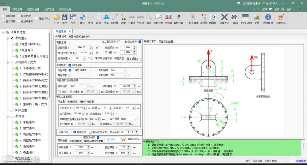 •核心干货:无论是整体锻造式还是插焊式吊盖,模块均能覆盖其设计与选型。更重要的是,它能够自动完成对加强环板、连接螺栓、法兰等关键部件的多工况强度与刚度验算,确保设计在理论上的绝对安全。