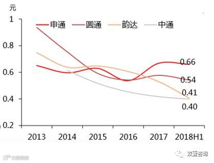 圆通、申通、韵达于A股借壳上市,上市时签订业绩承诺,2018年业绩承诺到期后,快递公司盈利压力减小,为了抢占市场,价格或将进一步加剧,而价格战的核心就是成本战。