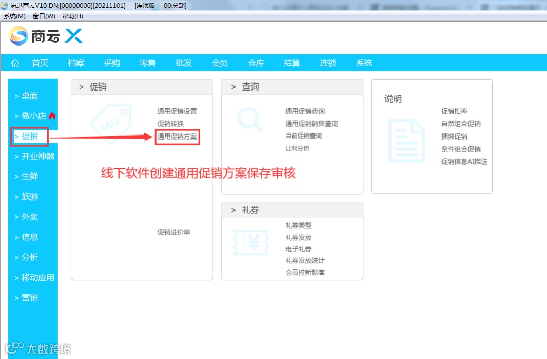 在线下收银系统中设置好通用促销方案,并保存审核。