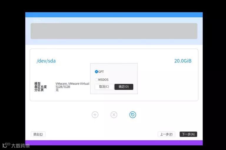 点击灰框以后会进行磁盘选择分区格式,同样没有文字说明,对于不知道GPT/MSDOS的人会比较懵逼,建议有的文字提示还是要有的,如果给专业的人士使用,我想当然不需要这些文字以及相关的介绍,我想Emind当然不是对专业人员开发的,所以……