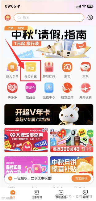 铭宣好友首次关注芒省真好省公众号,点击首页,