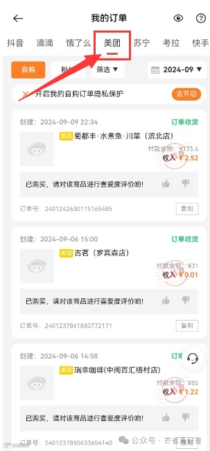 4、芒省真好省公众号点击 订单,购买返利直达账号提现!