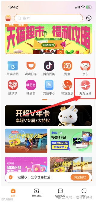 1、芒省真好省公众号点击 海淘返利,购买优惠资讯返利直达账号提现!