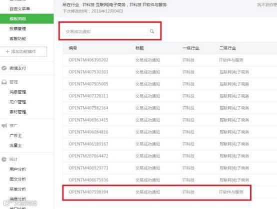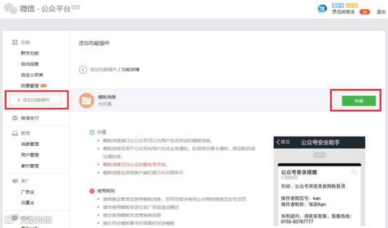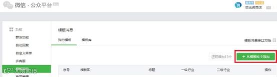 微信公众号添加模板消息功能