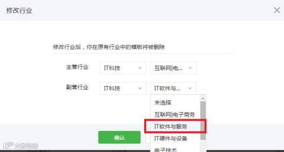 修改公众号行业,只需要修改副营行业