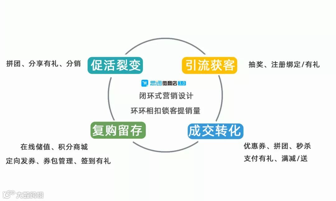 微商店3.0近20种闭环式营销工具设计,已完全满足商家营销活动所需。商家需认真体会每个活动的意义。