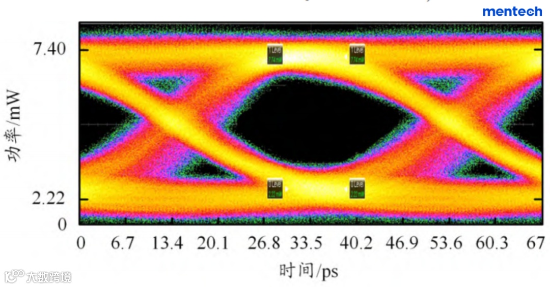 发射眼图余量大于30%,抖动均方值在2ps左右,消光比大于5dB,超行业标准。