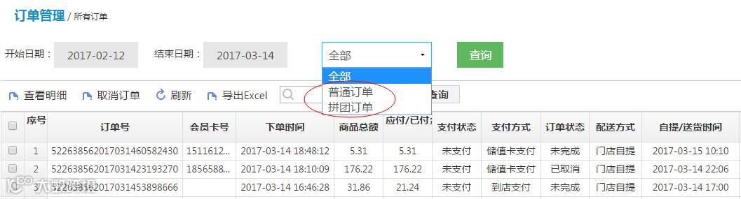 4、后台新增拼团订单菜单,可以查看所有参团订单