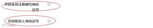 4、增加会员注册填写身份证号和收货人身份证号的开关,开启后如会员信息身份证号为空注册或下单需要身份证号