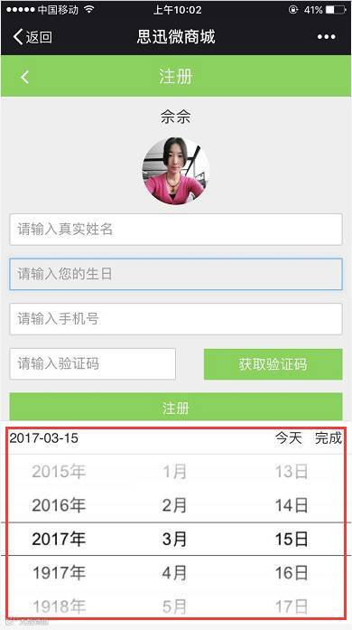 5、会员注册页面的生日填写控件替换(可滑动选择)