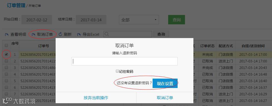 操作路径:订单管理—所有订单—选择订单—取消订单