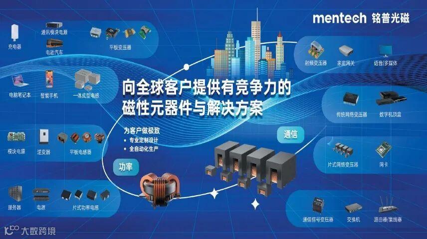 近年来,铭普聚焦全球前沿新材料和新技术,推动产业结构调整和升级,围绕高频化、小型化、集成化和节能化的市场需求,推出通信、光伏、储能及汽车行业磁性元器件整体解决方案,支撑信息和能源基础设施建设。