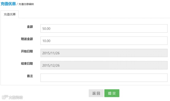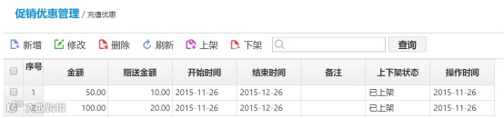 充值优惠管理: