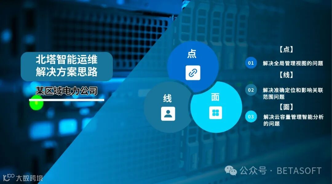 根据该电力企业所面临的运维挑战,在电力行业有超过二十年深入运维服务经验的北塔软件提出了“点-线-面”的运维管理模式。