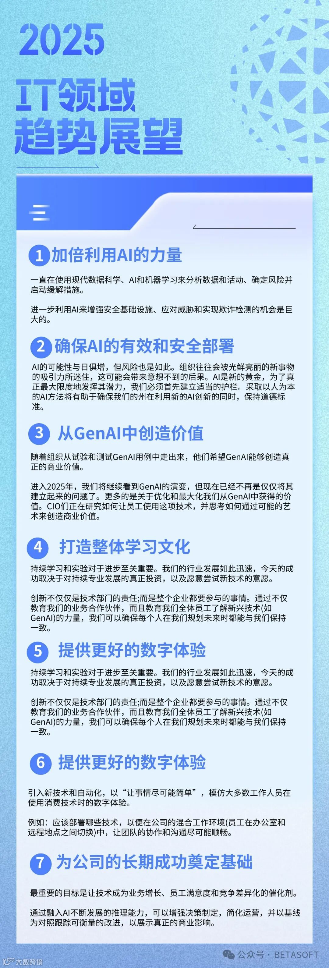 进入2025年,从CIO的计划来对IT领域做趋势展望。