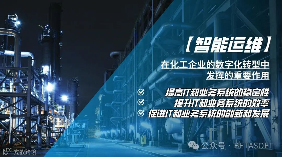 本期【案例优选】,以某大型化工制造企业为例,与您一同分享,北塔软件智能运维如何在化工制造企业起到了保障系统稳定性、提升运维效率、促进创新发展的积极作用,从而促进数字化转型的不断深入。
