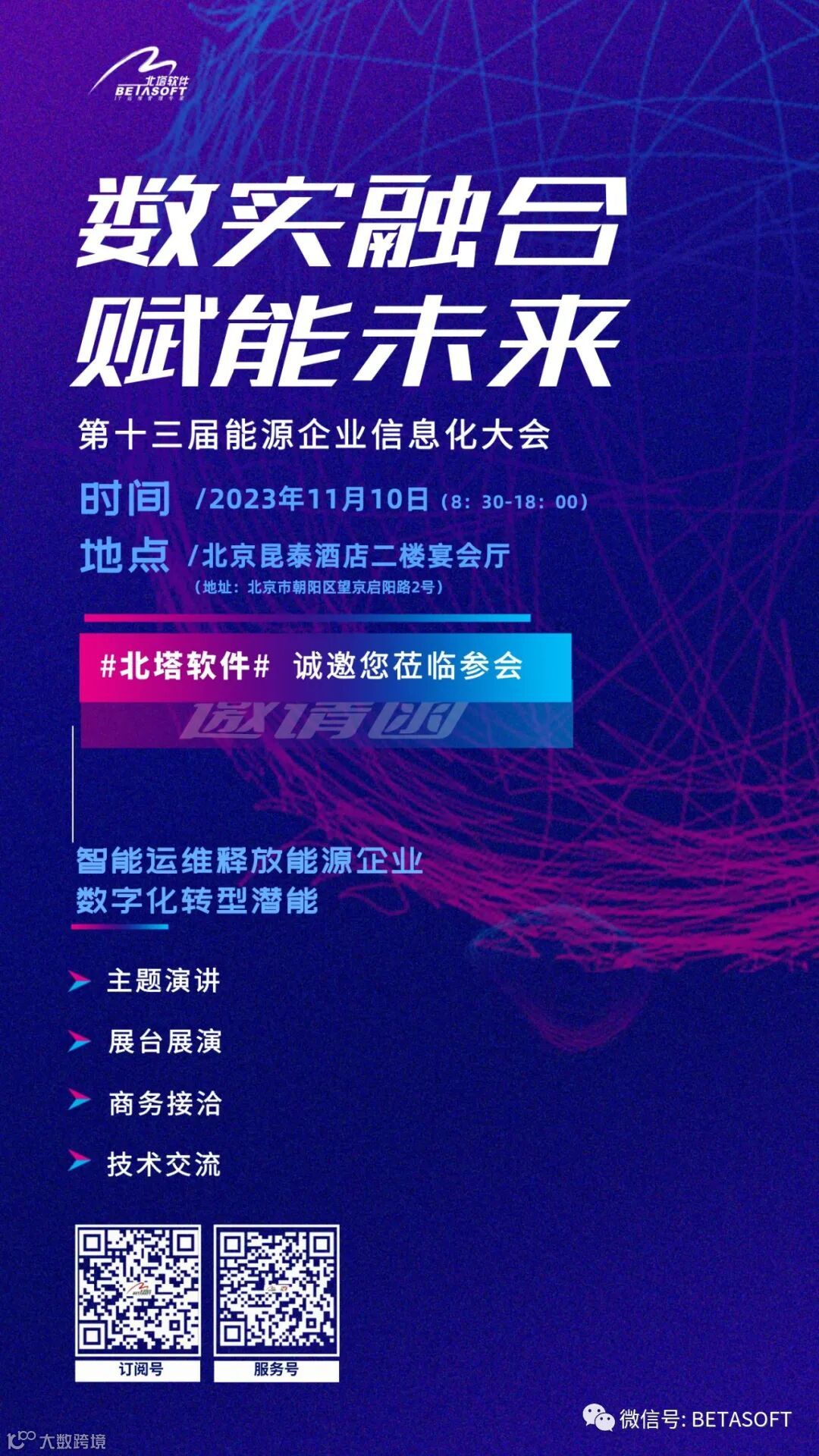 北塔软件作为受邀企业,基于近年来在智能运维领域的研发和服务经验,将向与会嘉宾分享“北塔云融合平台”如何推动智能运维释放能源企业的数字化转型潜能的各项实践。同时依托大会平台,设立展台,产品现场演示、需求面对面沟通、技术实时交流。