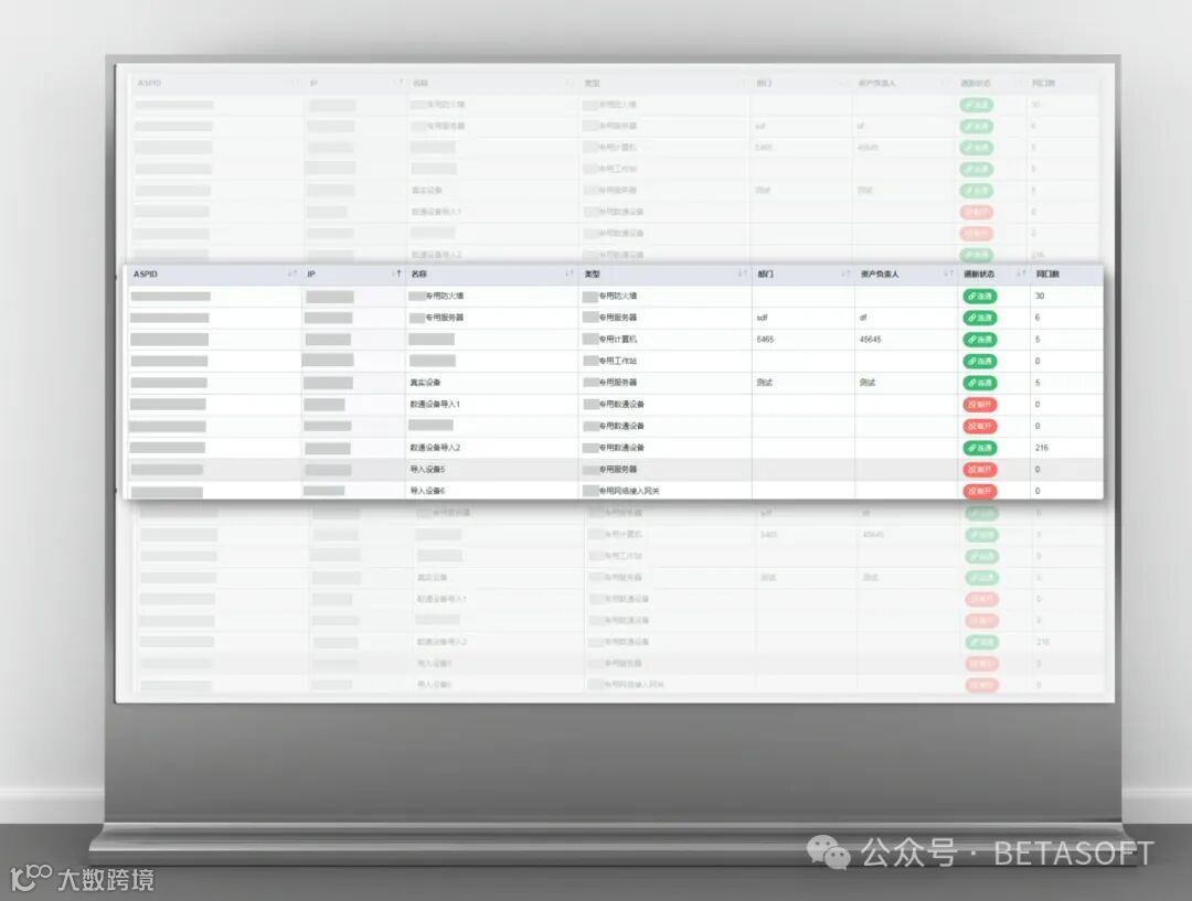 资产数据报表:能够对资产数据按照网元名称、IP地址等维度进行展示、查询、导出