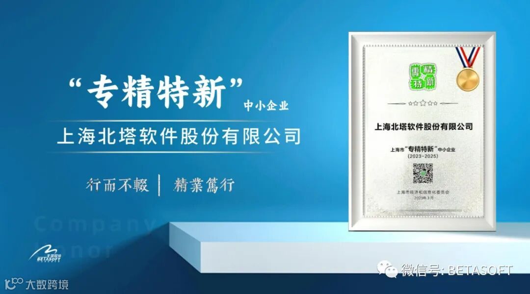 2023年,上海北塔软件股份有限公司再次被认定为“上海市专精特新中小企业”。