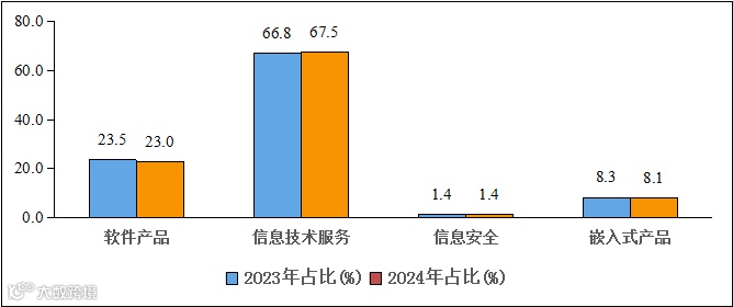 图4 2023年和2024年1—5月份软件业分类收入占比情况