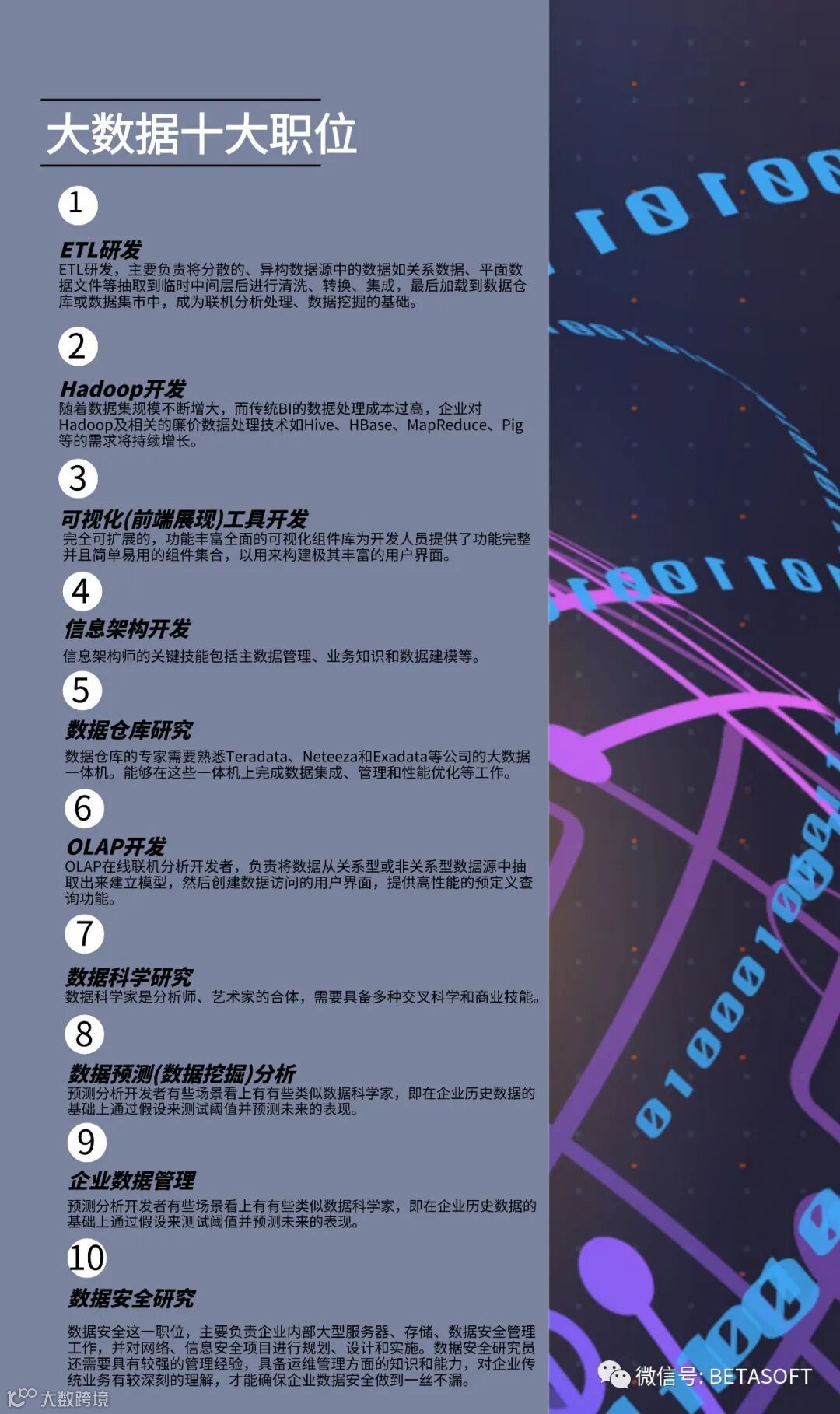 导读:大数据主要有三个就业方向,大数据系统研发类人才、大数据应用开发类人才和大数据分析类人才。