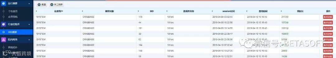 本版本支持Oracle数据库的锁监控,预置HIS系统会话监控。
