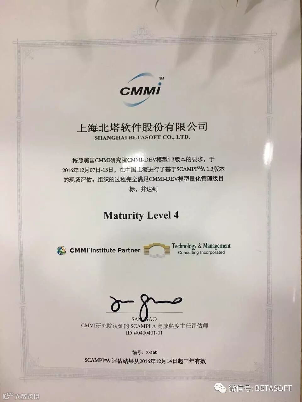 2017年1月18日,经SEI(卡内基-梅龙软件工程研究所)通过官网发布信息,宣布上海北塔软件股份有限公司(以下简称“北塔软件”)于2016年12月14日顺利通过CMMI(软件能力成熟度模型集成)L4级评估,这是北塔软件继2011年通过CMMI L3级评估后的又一次发力。