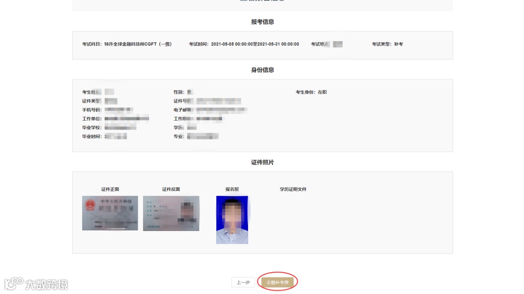 考生进行正考报名时需提交身份资料,以审核是否满足报考条件。