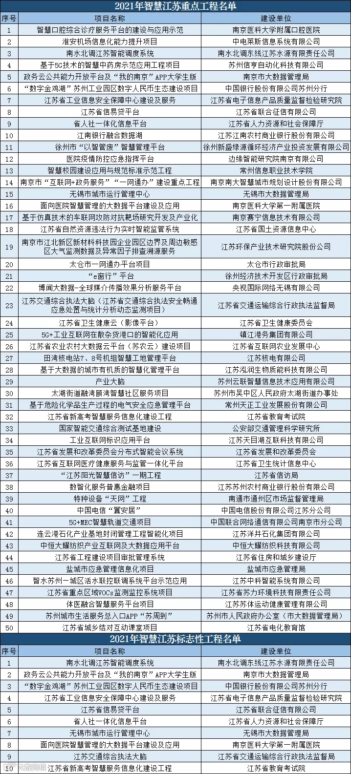 导读:2021年智慧江苏重点工程和标志性工程名单公布