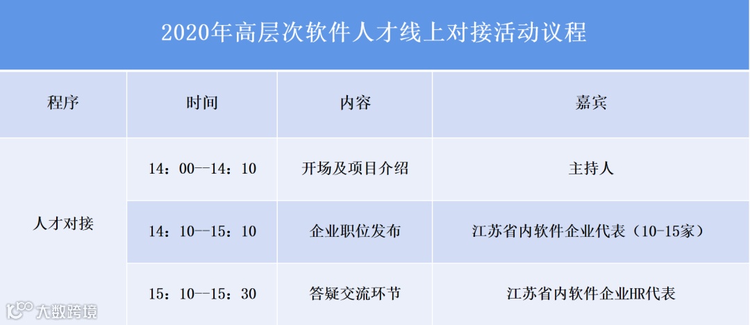 在江苏省工业和信息化厅指导下,江苏省软件行业协会举办此次“2020年高层次软件人才线上对接活动”。具体内容如下: