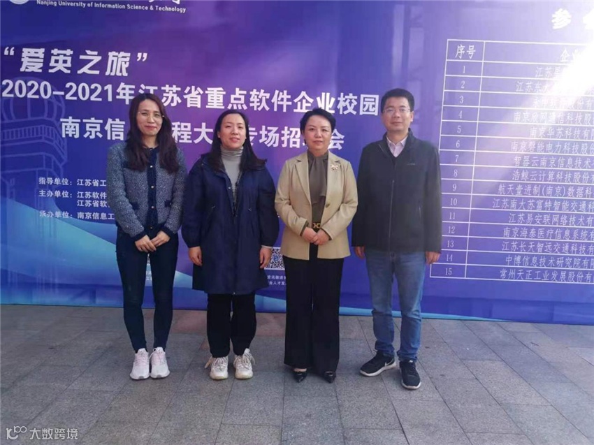 11月9日,2020年“爱英之旅”江苏省重点软件企业全国校园行招聘会第三站在南京信息工程大学成功举行。省工信厅软件与信息服务业处、省软件产业人才发展基金会、省软件行业协会、南信大学工处、计算机与软件学院相关负责人、江苏重点软件企业HR及应聘学生总计逾200人参加了本站活动。