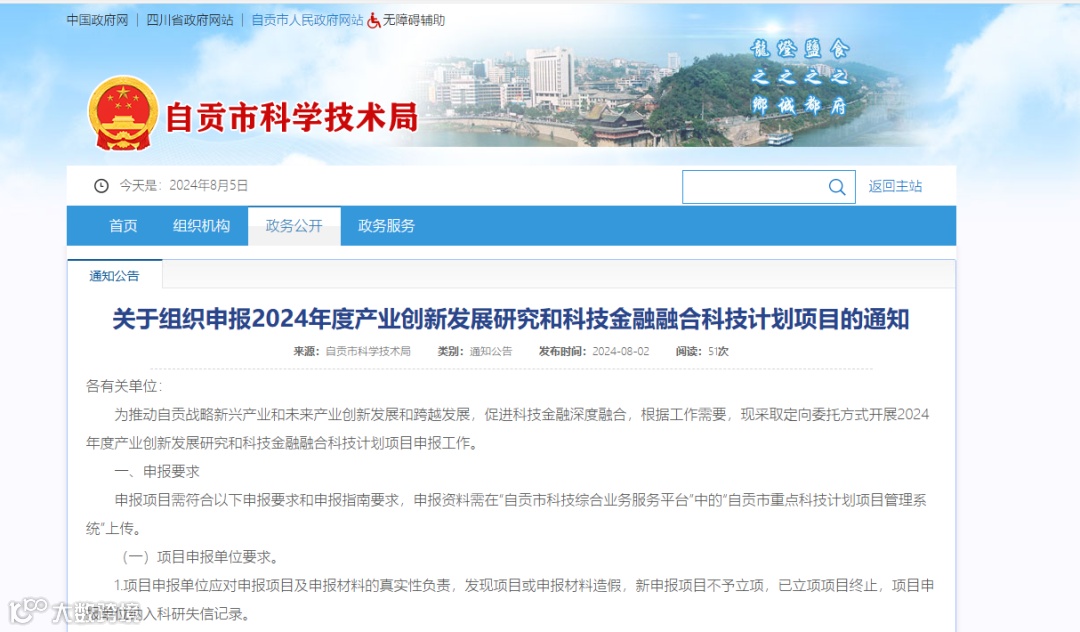 (一)项目申报单位网上申报时间为2024年8月5日9:00—8月9日18:00。自贡市科技项目管理系统将在2024年8月9日18:00自动关闭。