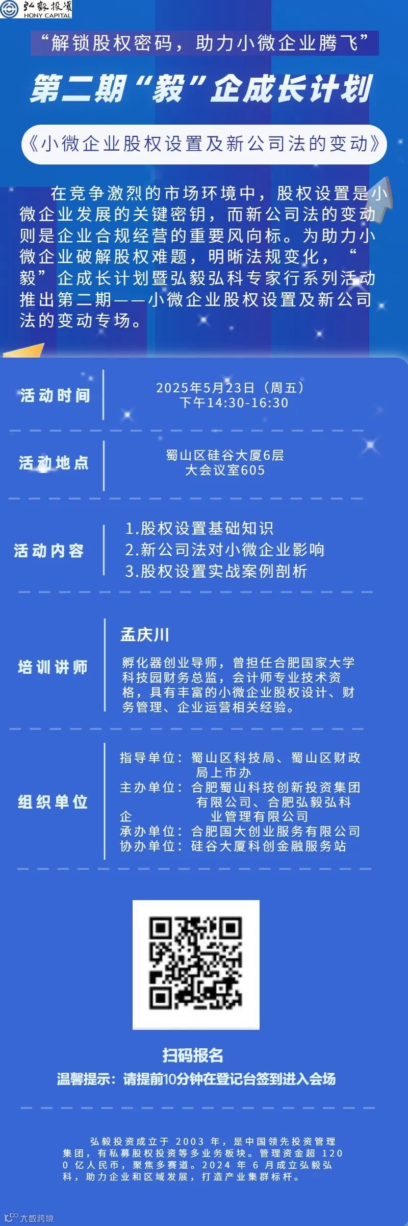 活动报名丨第二期“毅”企成长计划暨弘毅弘科专家行系列活动——小微企业股权设置及新公司法的变动专场