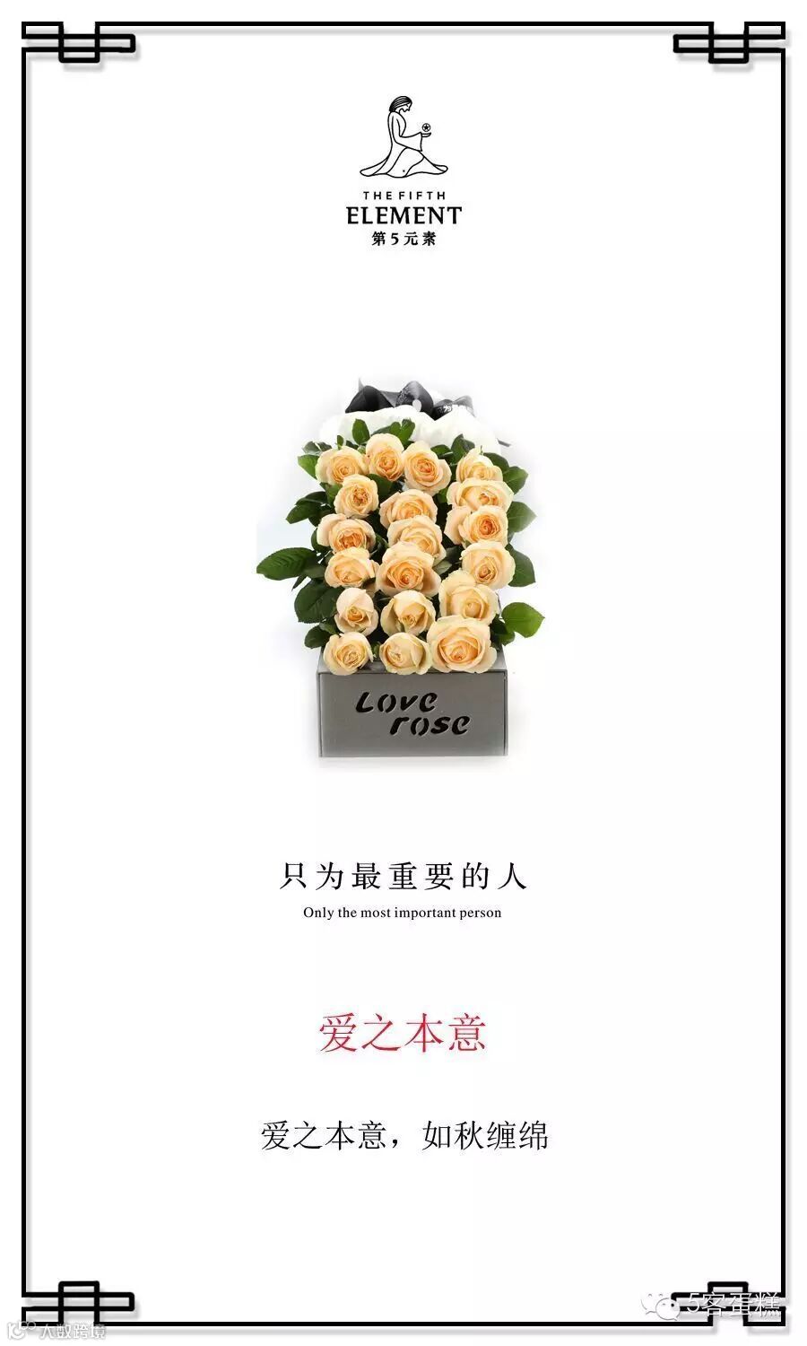 导读:爱如四季,不停不息。爱之告白,如春和暖;爱之勇敢,如夏炙热;爱之本意,如秋缠绵;爱之感恩,如冬浪漫。这个七夕,爱不迟到,第5元素玫瑰只为重要的人,全城速达。