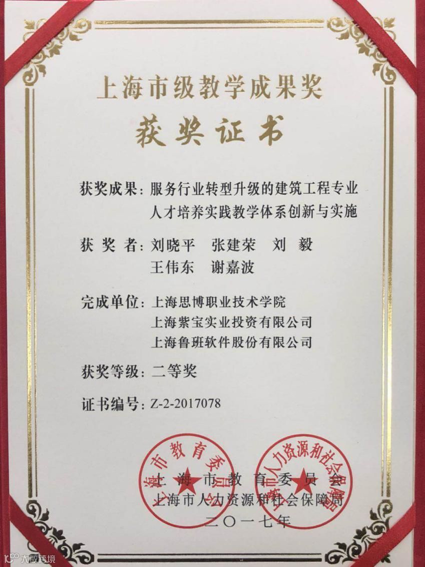 近日,由鲁班软件和上海思博职业技术学院开展的校企合作项目——《服务行业转型升级的建筑工程专业人才培养实践教学体系创新与实施》成果,在上海市级教学成果评比中荣获二等奖(由上海市教育委员会、上海市人力资源和社会保障局联合颁奖)。
