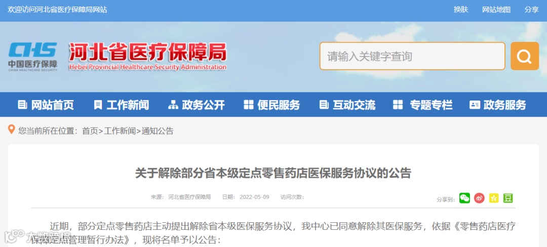 近期,部分定点零售药店主动提出解除省本级医保服务协议,我中心已同意解除其医保服务,依据《零售药店医疗保障定点管理暂行办法》,现已经将名单公示。