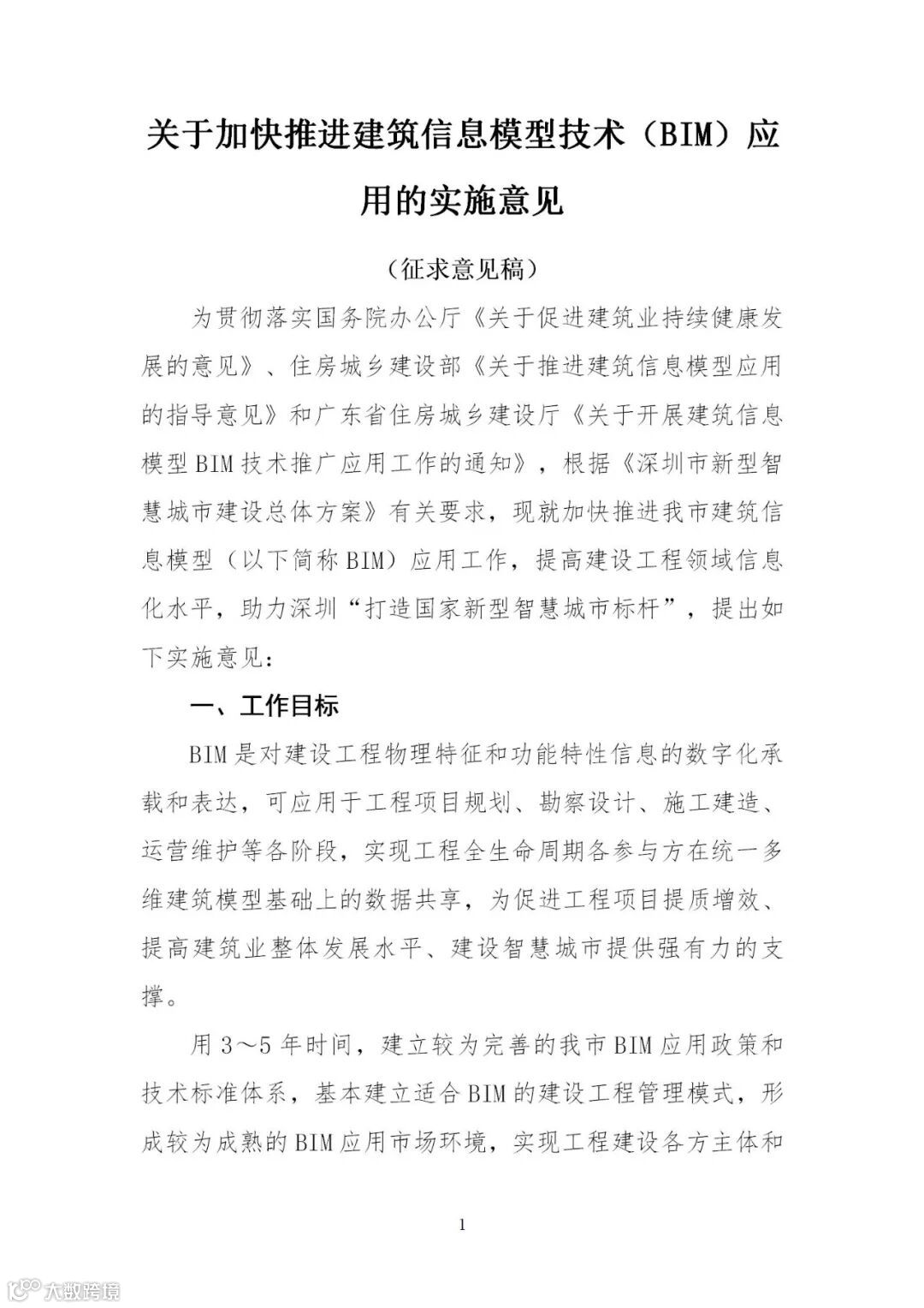 附件1.《关于加快推进建筑信息模型技术(BIM)应用的实施意见》(征求意见稿)