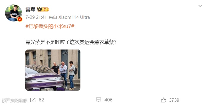 小米在巴黎博物馆街区布下“人车家全生态”特展,小米SU7首次亮相巴黎。可以看到,小米SU7在欧洲极受关注,非常多各国游客和它拍照合影。