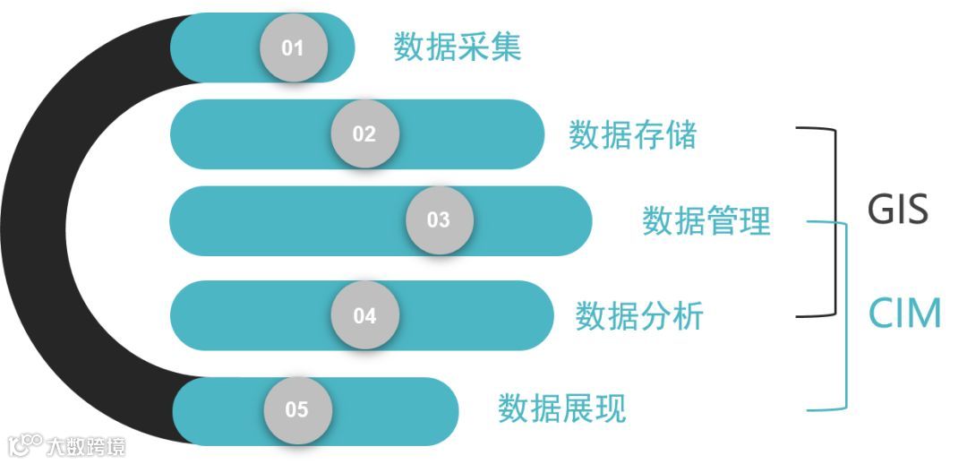 GIS 产品是针对地理信息数据进行采集、存储、管理、分析和展现,其数据模型是点线面形式的二维模型。而 CIM 是三维的城市模型,尤其擅长二维三维一体化的数据可视化呈现。