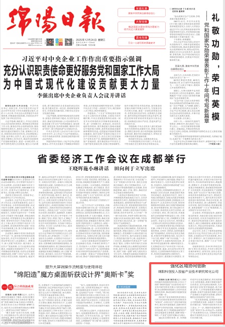 今天(12月24日),《绵阳日报》要闻版刊发报道《强化区域协同创新——绵阳科创投入股省产业技术研究转化公司》。文章聚焦绵阳科创投公司投资四川省产业技术研究转化有限公司的重要举措,详述了此次合作对绵阳融入全省科技成果转化体系、强化区域协同创新、推动科技产业深度融合的关键意义。以下是报道全文: