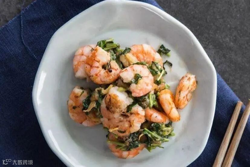 4、锅中倒油烧热,下虾仁至8分熟;倒入香椿杆,加盐炒软,再倒入香椿叶略炒即可出锅。