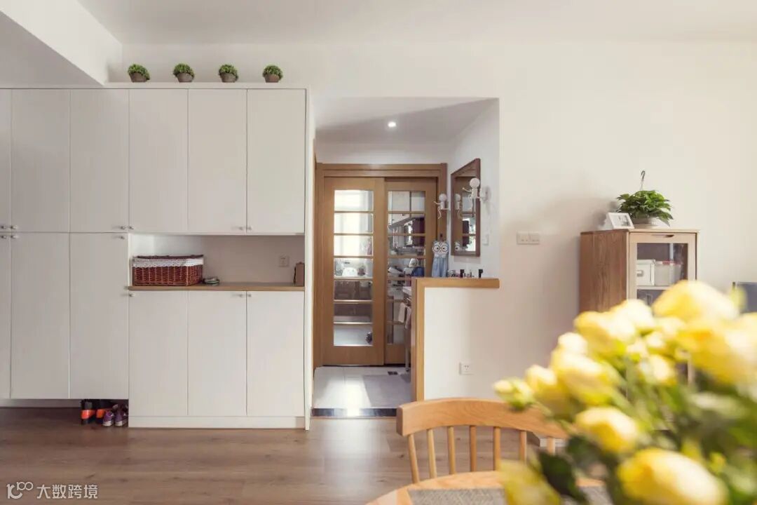 像是收纳盒、临时物品放置区域、衣物临时悬挂区等。这样子回家所携带的物品,都有了安放的定位了,即使每天进出频繁,也不容易造成凌乱。