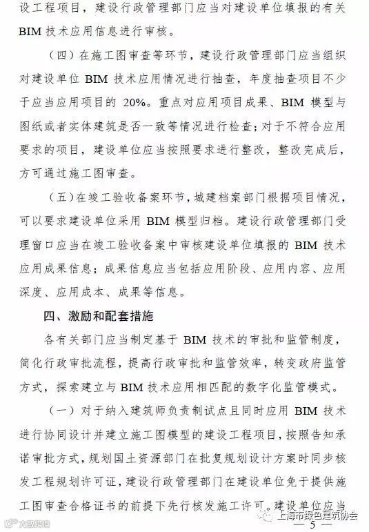 施工图审查等环节:对项目应用BIM技术的情况进行抽查,年度抽查项目数量不少于应当应用BIM技术项目的20%。
